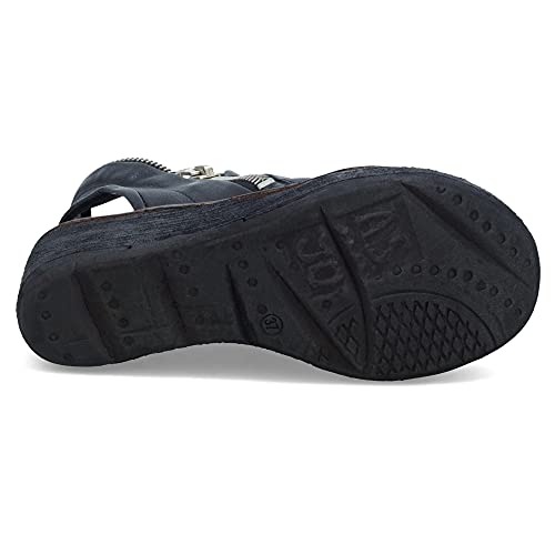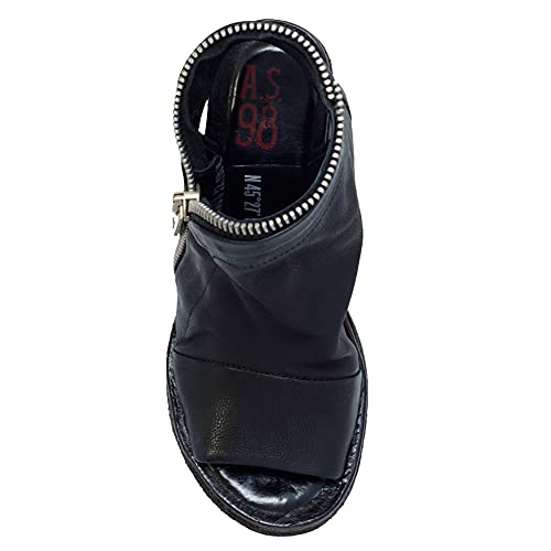 A.S.98 NaylorRock-N-Roll SandalA.S.98 delivers a creative take on the ladies wedge sandal. The Naylor wedge sandals offers a style you can wear all day. Features an asymmetrical zip closure that adds a rock style and function. Unique Design The exposed zipper look adds an elevated combination of bold style and comfort. The A.S.98 Naylor features a leather panel with 3 heel. Made of high-quality European leather materials & premium rubber sole. A staple in your closet. About A.S. 98A.S.98 shoes are constructed by hand with unparalleled skill, by passionate and dedicated craftsmen in a family run factory. Employing elaborate needle work, leather weaving, and hand burnishing, these artisans leave their own impressions on each pair of shoes, ensuring exceptional quality, character, and uniqueness. These elements make A.S.98 easily distinguishable from mass produced products, and loved by those who demand quality, craft, and uncompromised style.Handcrafted QualityOur fine leathers come to life in the historic tanneries of Italy, iconic home of quality leather goods and materials. Leathers are tanned and treated by hand, a process that reveals the individual textures and characteristics that make each piece unique. These are the perfect canvas for A.S.98’s signature leather-working techniques and constitute the soul of an A.S.98 design. Flexible metal, rivets, eyelets, studs chain, and zippers are a fraction of the details that add edge to the organic materials, and the marriage of these elements is the essence of our innovative and fearless style.