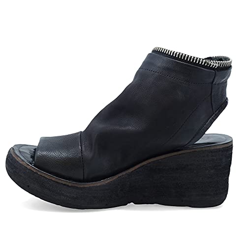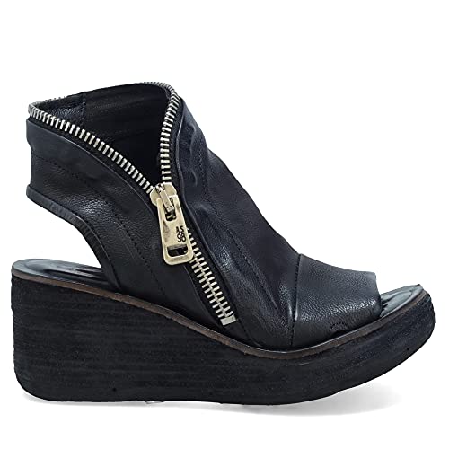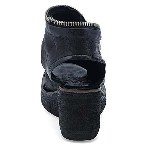 A.S.98 Naylor Wedge Sandal for Women – Open Toe Ladies Wedge Sandals with Leather Upper & Asymmetrical Zipper Collar