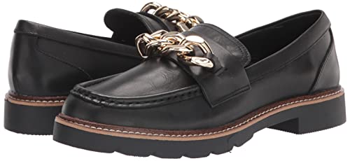 Anne Klein’s Emmychain loafer features a statement chain detail with a slip on loafer vibe.