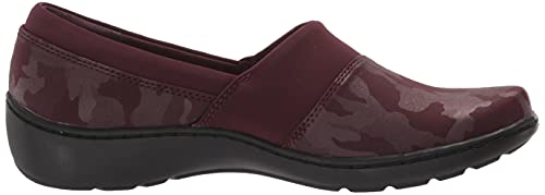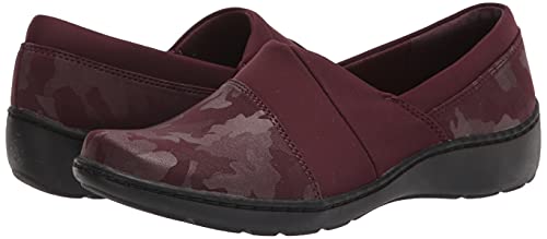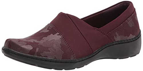 Clark women Cora Heather: Flexible textile instep gives this full grain leather shoe an easy, no-laces-required fit. As an Ultimate Comfort style, it benefits from targeted padding and an Ortholite footbed that wicks away moisture and reduces impact.