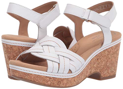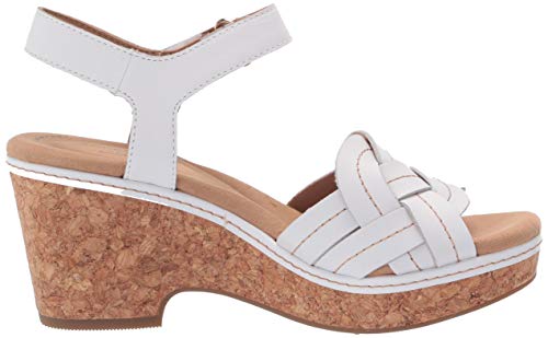 A chunky 3-inch wedge in a beautiful woven leather pattern, the Giselle Coast is the perfect spring heeled sandal. The adjustable hook and loop ankle strap allows for a comfortable fit, while the Ortholite footbed absorbs impact and wicks away moisture. The cork-wrapped sole is finished with rubber for vital grip. Wear with sundresses or flowing skirts for fresh and beach-ready looks.