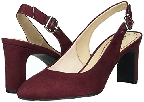 With a modern heel shape and heel-to-toe comfort, this slingback pump is a favorite. Faux leather upper with a round toe, slingback strap with adjustable metallic buckle, and modern heel shape.