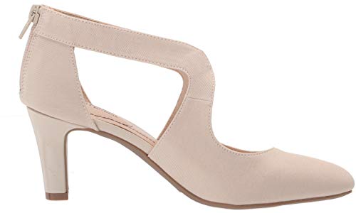 Elegant, effortless, and unbelievably comfortable. This pump hits all the right notes. Dressy fabric upper with an almond toe, back zip closure, front and side cutouts, and flexible goring panel for extra flexibility.