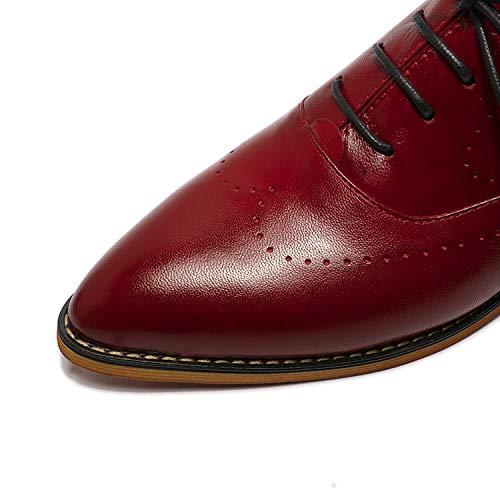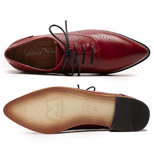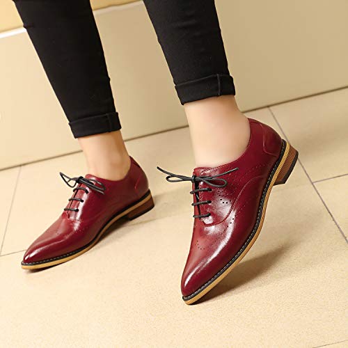 Mona flying Women’s Leather Perforated Lace-up Oxfords Brogue Wingtip Derby Saddle Shoes for Girls ladis Women